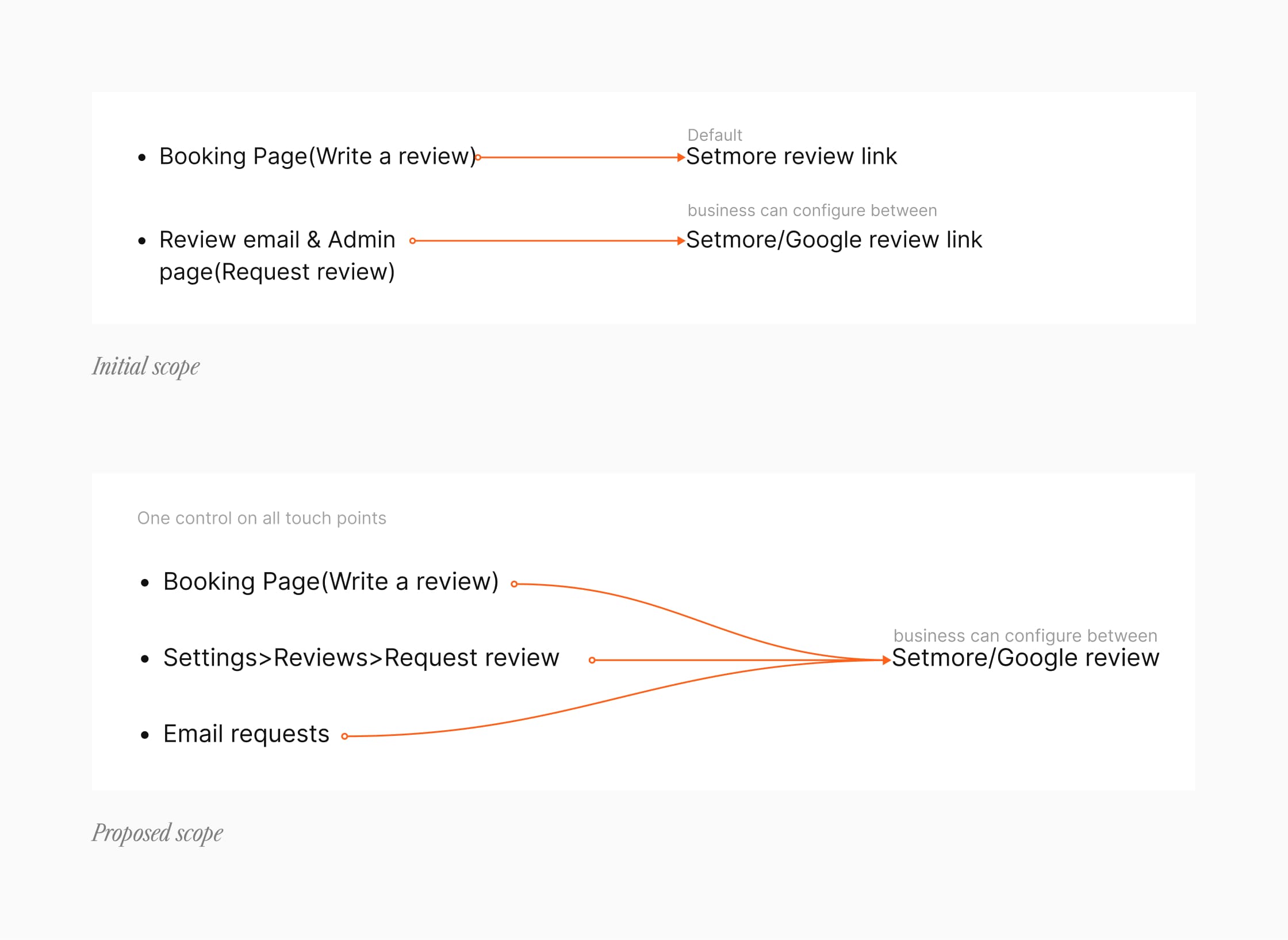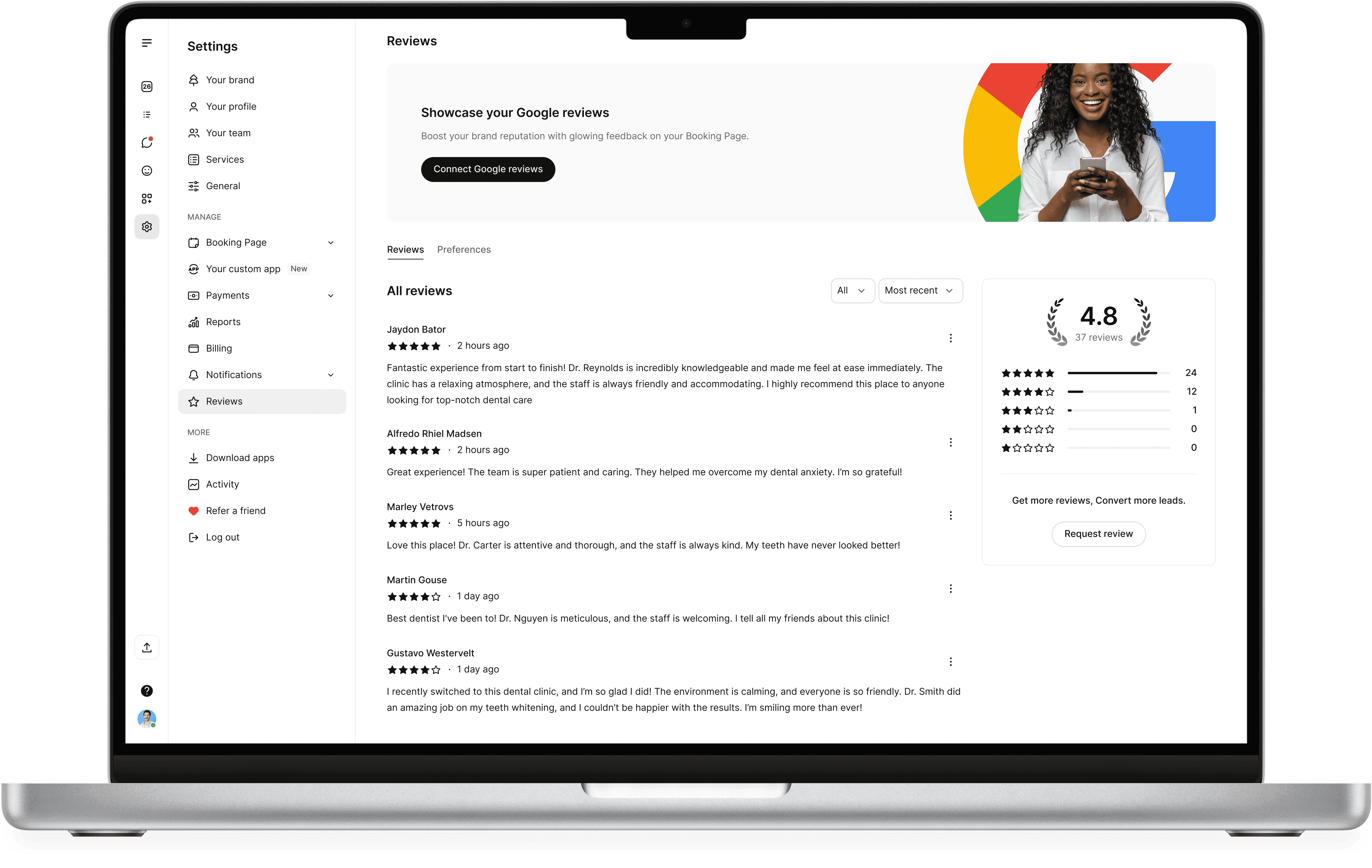 The original plan synced Google reviews directly to the Booking Page with no in-app view, meaning businesses had to leave the app to see what was displayed. Since the app is already where they manage bookings, payments, and customers, bringing reviews in-app was the obvious call.