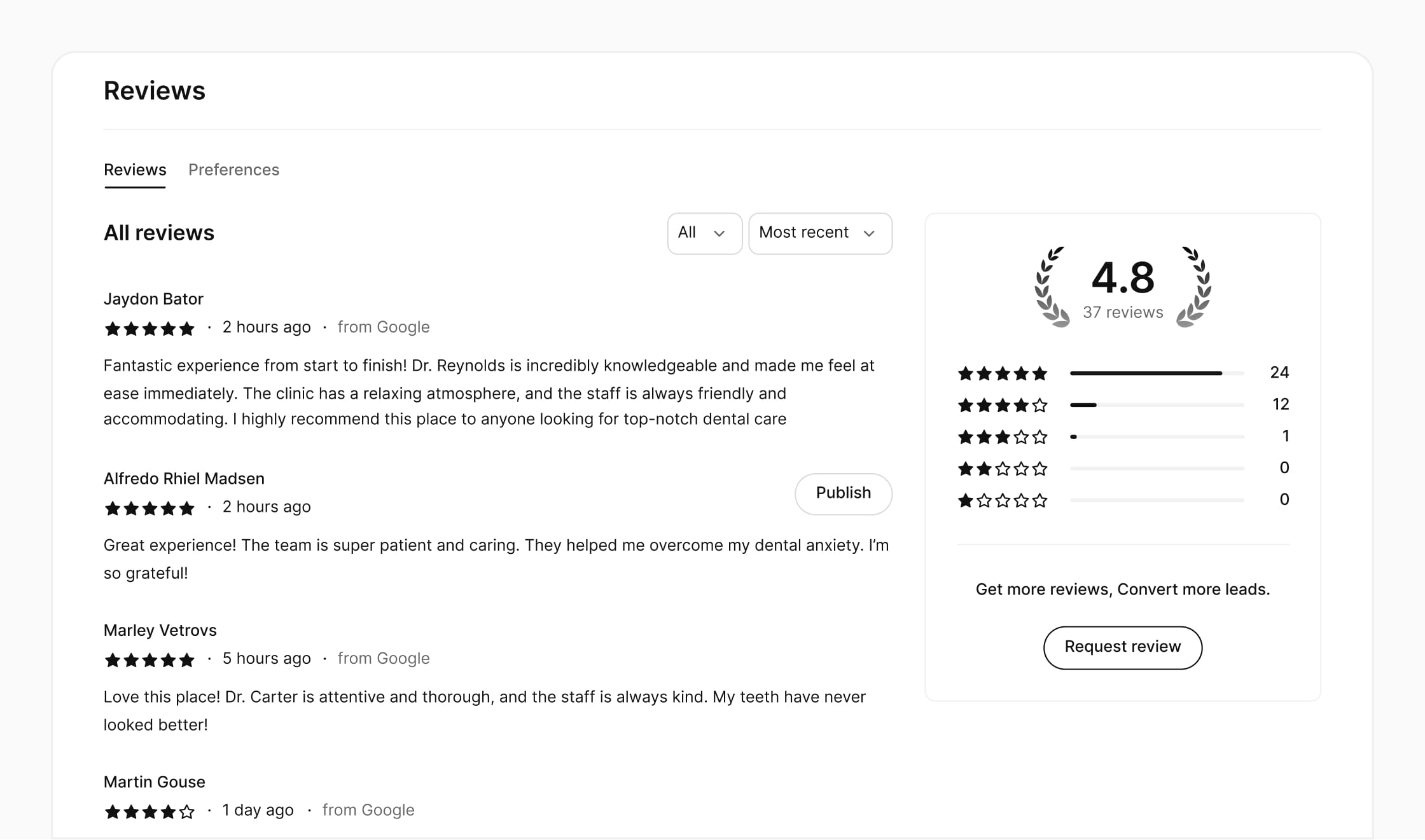 Unified reviews dashboard