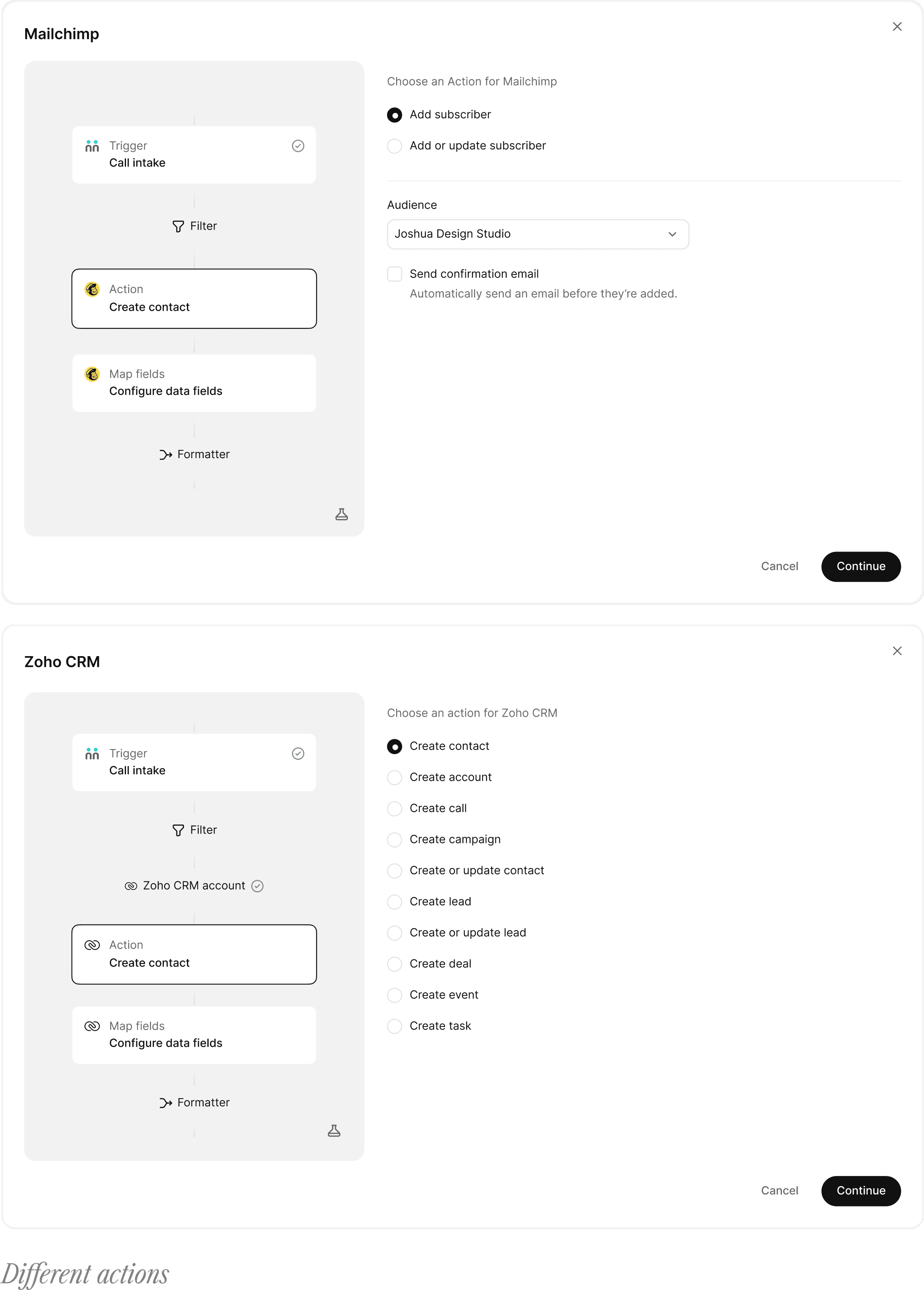 Redesigned a fragmented integration experience into a flexible workflow system that supports both complex, multi-step setups and simple, one-step connections.